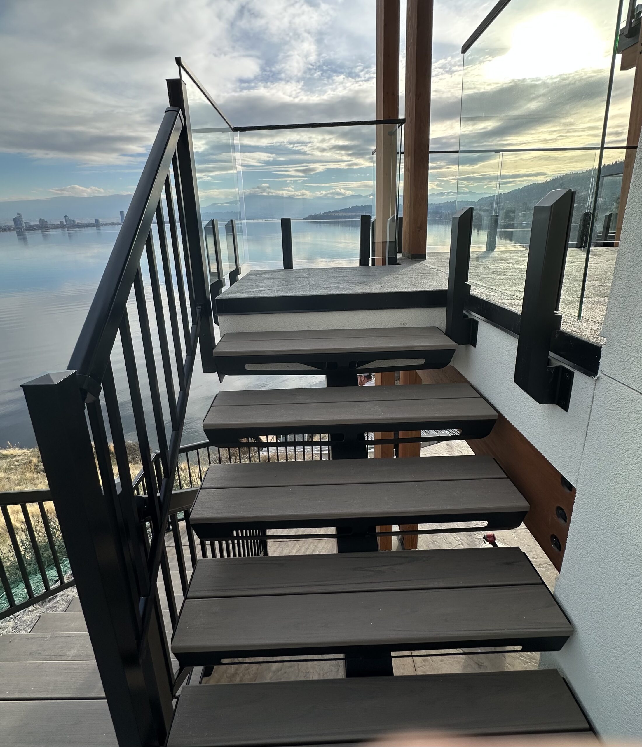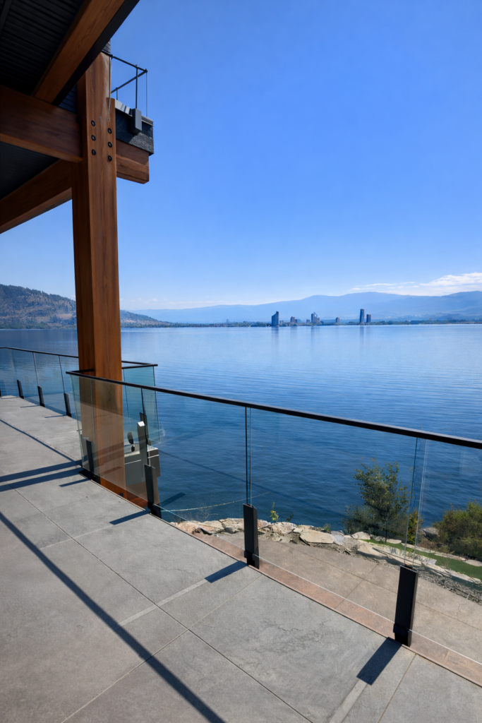 Glass & picket railing expertly crafted: our proprietary short post system delivers frameless glass with minimal hardware and unbeatable panoramic views, paired with timeless, durable picket designs, all backed by over a decade of Okanagan quality workmanship